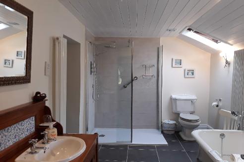 | Bathroom with Victorian fittings and large walk-in power shower |
